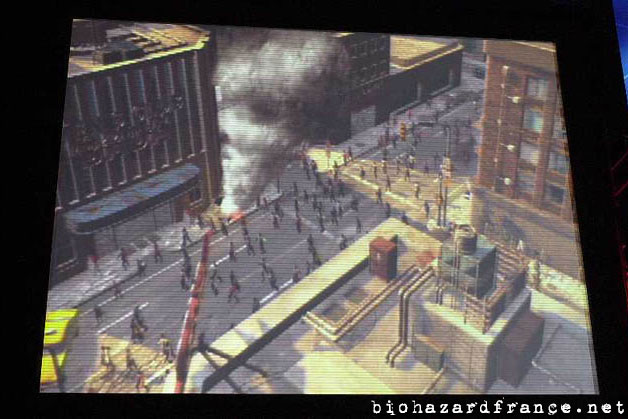 - Ces images ont été diffusées sur le stand de Sony lors de l'E3 2002. D'après diverses sources, il serait possible de jouer simultanément jusqu'à 4 joueurs en écran splitté, il y aurait un choix intéressant de personnages, et ceux-ci pourraient être contaminés par le virus et se retourner contre leurs coéquipiers.